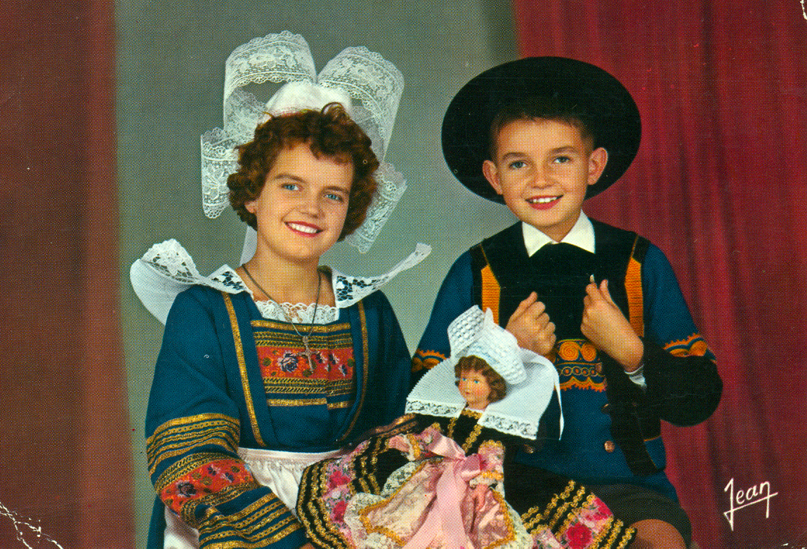 Août 1965. J’ai dix ans. Je reçois cette carte à La Londe Les Maures, où je passe des vacances en famille. En juillet, j’ai fini mon camp de louveteaux à l’hôpital de Roanne, après une appendicite aigüe. Mes parents et mes frères sont passés me prendre, direction le Var. Lorsque nous sommes arrivés, un gigantesque incendie ravageait les collines du village. Le feu s’est arrêté à quelques mètres de la maison de location. Nous avons passé la première nuit chez un collègue de mon père. Nous avons eu plus de chance, avec cette arrivée décalée, que Philippe Jaenada dans « Plage de Manaccora, 16h30 ». La carte n’est pas d’Agnès, je ne la connaissais pas encore. Elle est envoyée de Quimper par Jérôme L.H., mon parrain. J’aime la mise en abyme entre la petite fille et la poupée. Mon parrain est breton, ça n’étonnera personne. Il m’écrit « Bientôt, il faudra à nouveau reprendre l’école et je pense que tu travailleras bien, comme d’habitude ».